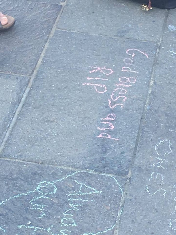 Individuals were also encouraged to light candles and write messages of remembrance and support in chalk on stones surrounding the vigil site.