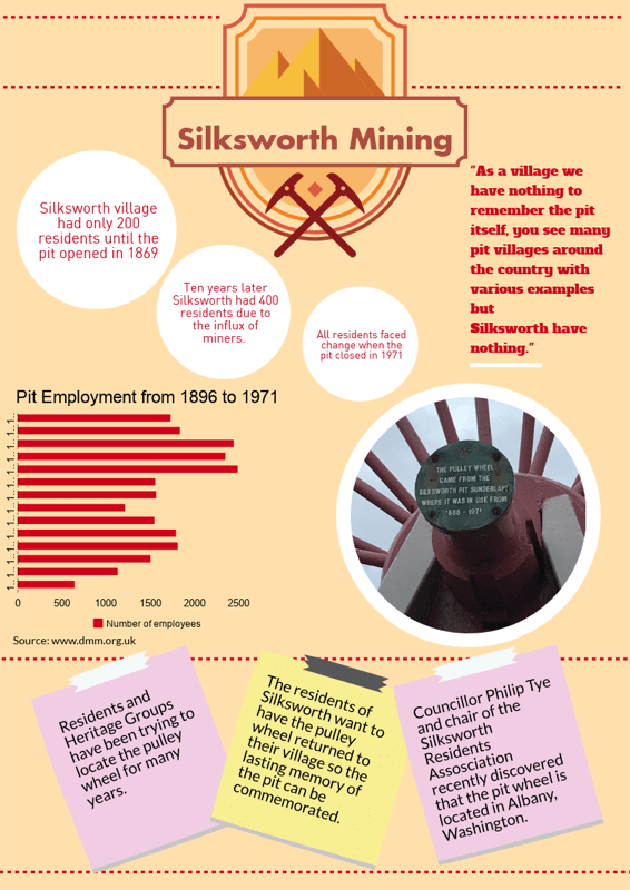 Local groups including the Silksworth Resident’s Association Silksworth Heritage Group, Silksworth Banner Group and local councillors have been trying to find the location of the pulley wheel so that the lasting memory to commemorate the pit can be erected in Silksworth.