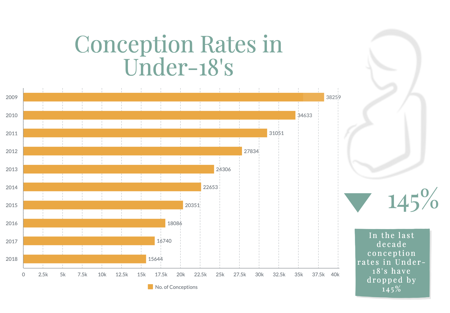 Whilst overall there has been a nationwide decline in the conception rates in under-18’s, teenagers from disadvantaged backgrounds living in deprived areas are more likely to fall pregnant at a younger age. There is still disparity between teen pregnancy rates based on the affluence of an area with, working class communities being hit the hardest.